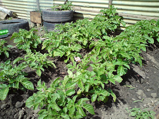 I hung the shallots to dry in the shed, and having got some red onions (for the coleslaw!) bent back the rest of the onions so that they can ripen. In a fortnights time will fork the roots and dry for the two weeks whilst we are in Ireland.